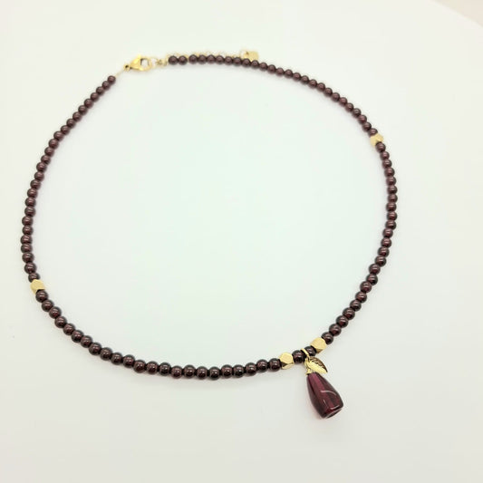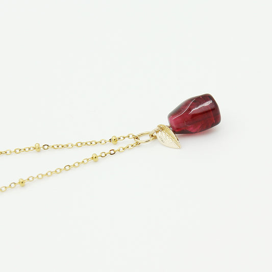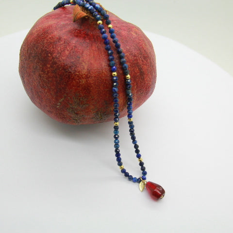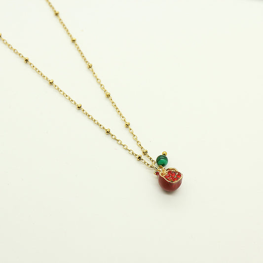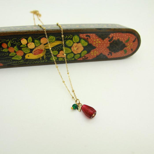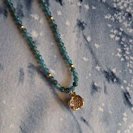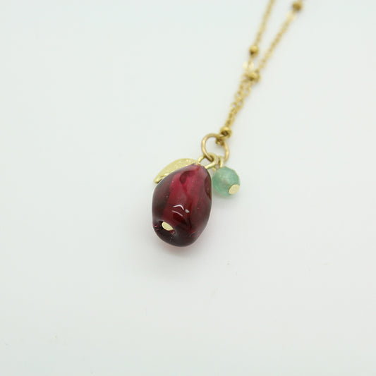 Pomegranate Necklace, Glass Pomegranate, Apatite chain