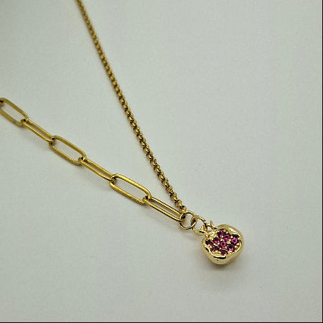 Pomegranate Necklace, Glass Pomegranate, Apatite chain