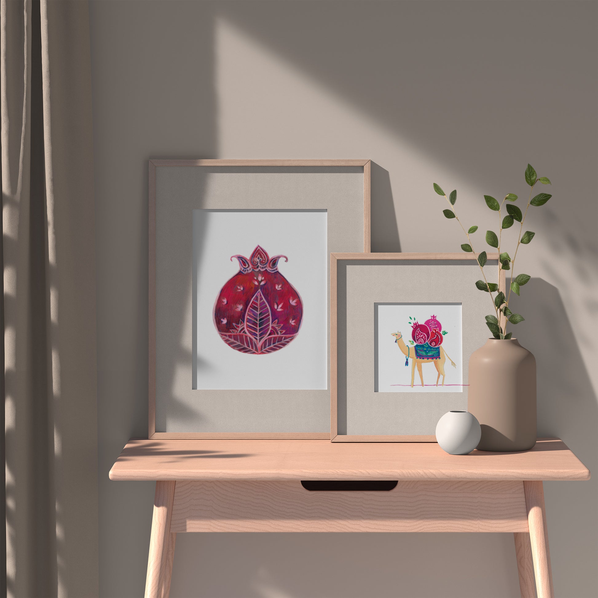 Persian Camel, Pomegranate Illustration, Pomegranate Wall art, Pomegranate Art Print
