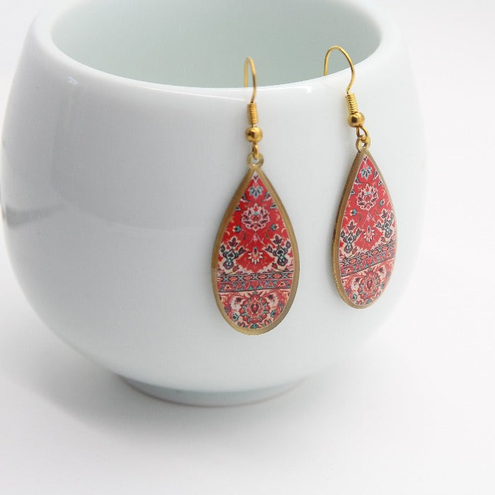 Persian Motifs Earrings, Persian earrings, Red Drops Earrings