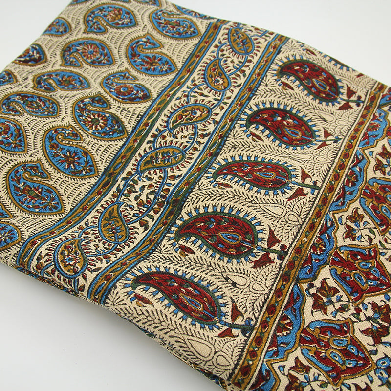 The Square Tablecloth is hand printed with wooden stamps. "Ghalamkar" means "print work" in Persian. Our artisan stamped this tablecloth 600 times to cover the whole surface!