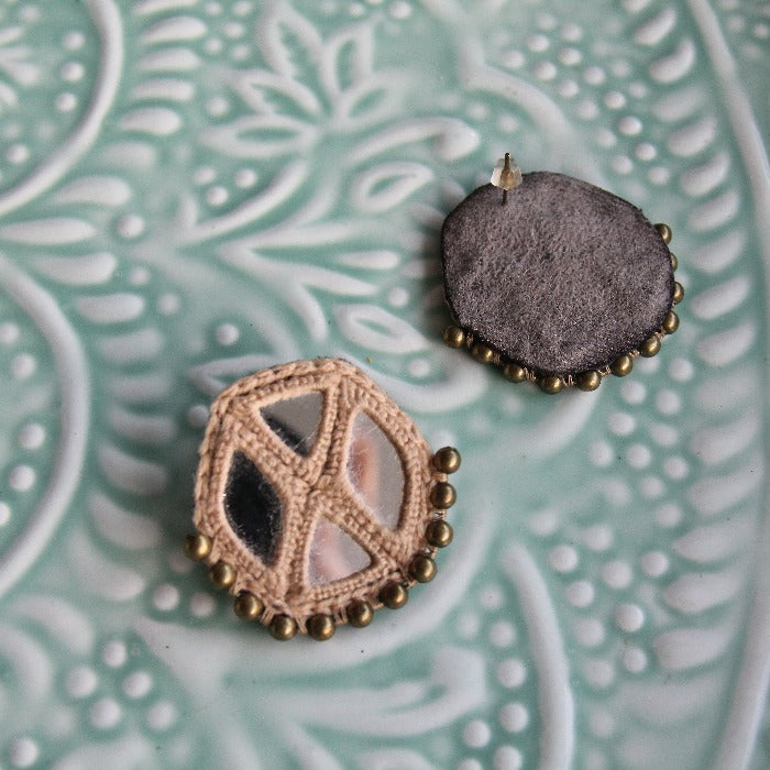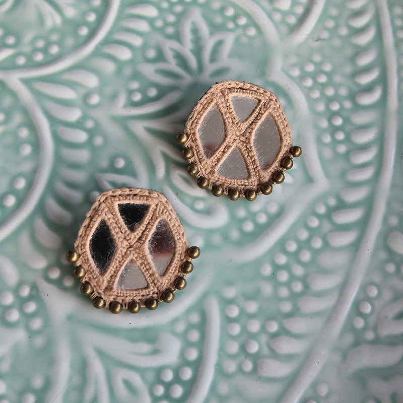 The earrings are hand made needle work with 100% natural thread, all environmentally friendly material (100% cotton and brass, NO plastic) for people that we share our concern about environment with. One item takes days and days of needlework. The artistic patterns inspired from the Persian heritage adds to warmth to your style.