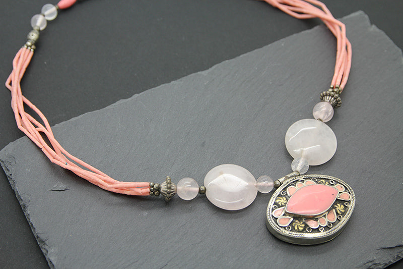 Pink Quartz Necklace, Afghan Vintage Necklace
