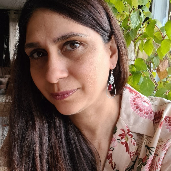 The pomegranate seeds are made in hand-blown glass. For this reason, each piece is unique and may differ from one another.