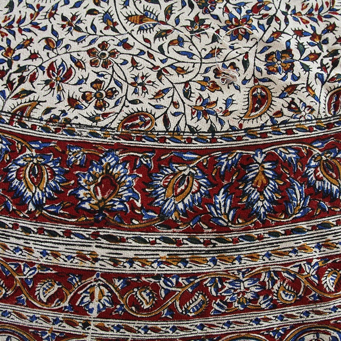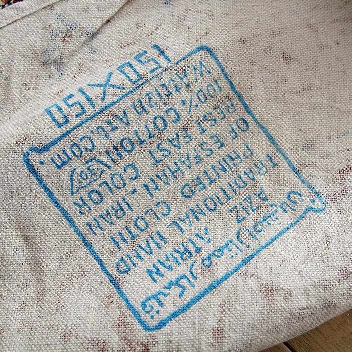 The Square Tablecloth is hand printed with wooden stamps. "Ghalamkar" means "print work" in Persian. Our artisan stamped this tablecloth 600 times to cover the whole surface!