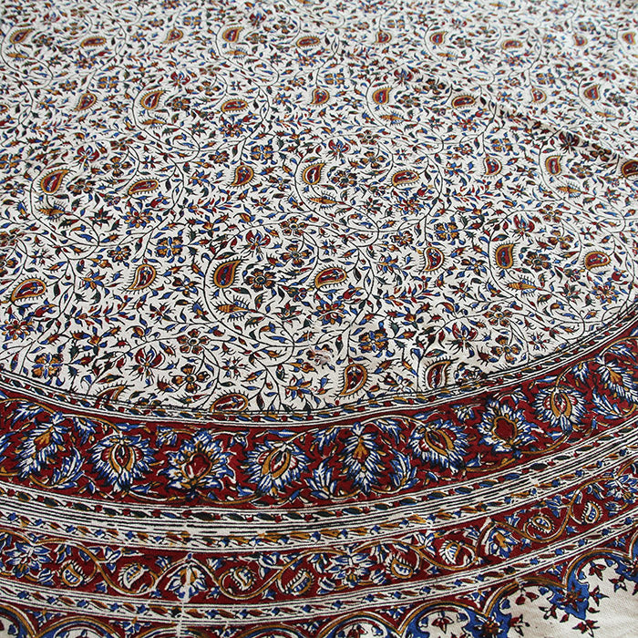 Round Red Ghalamkar, Handmade Tablecloth 150x150 cm