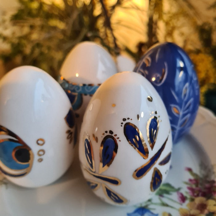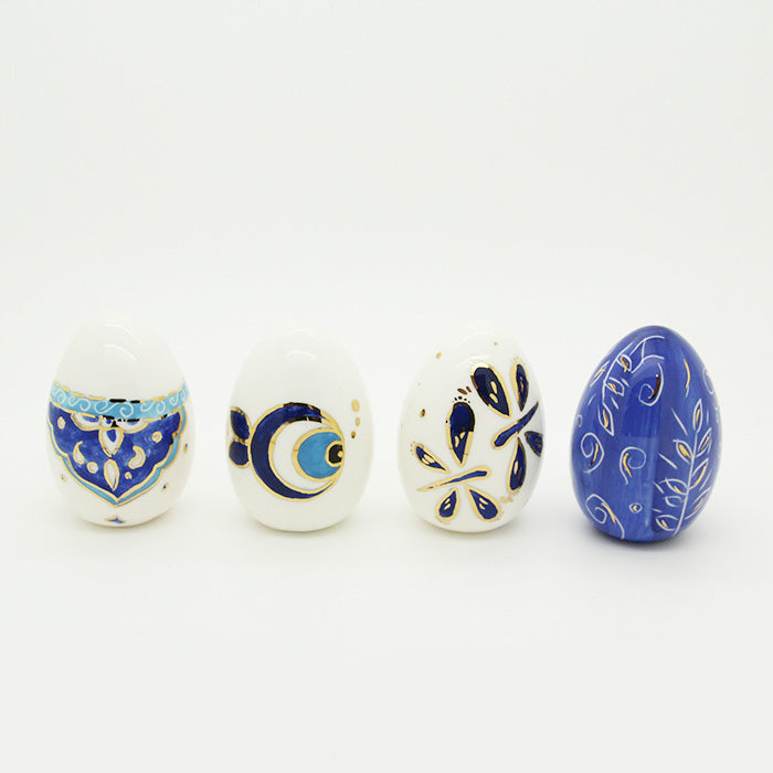 Set of 4 Handmade Ceramic Eggs, Bleu Libellule